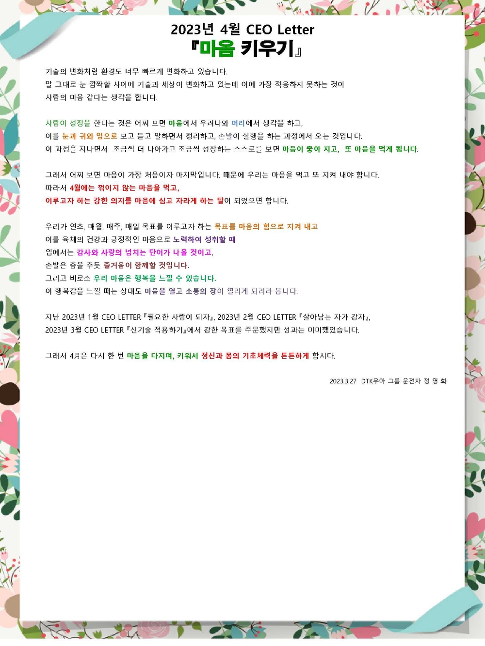 APR 2023 CEO Letter 『developing one's mind』