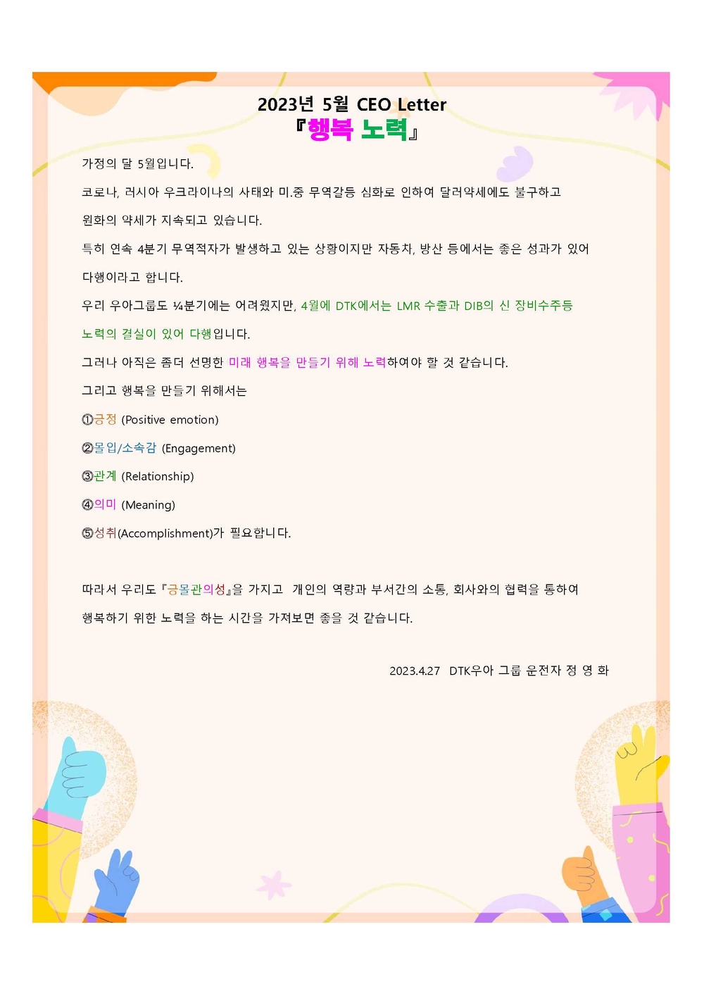 MAY 2023 CEO Letter 『an effort to be happy』