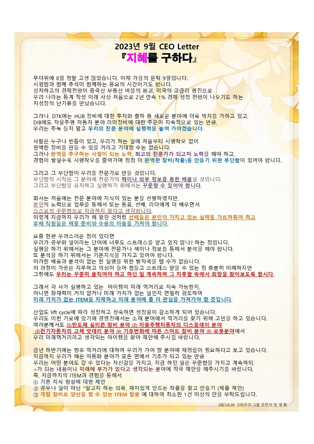 AUG 2023 CEO Letter 『Achieving goals and immediate compensation』