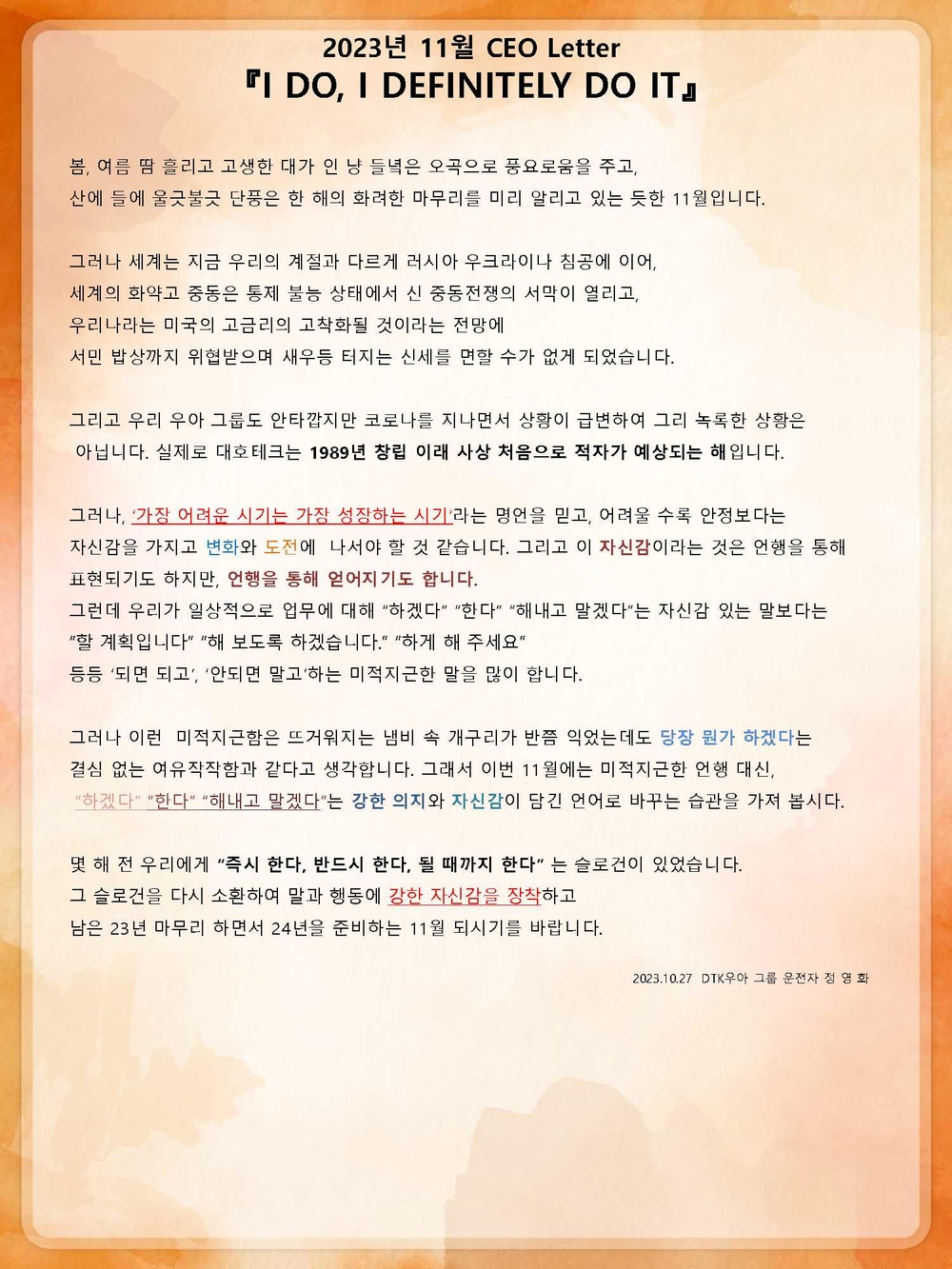 NOV 2023 CEO Letter 『I DO, I DEFINITELY DO IT』